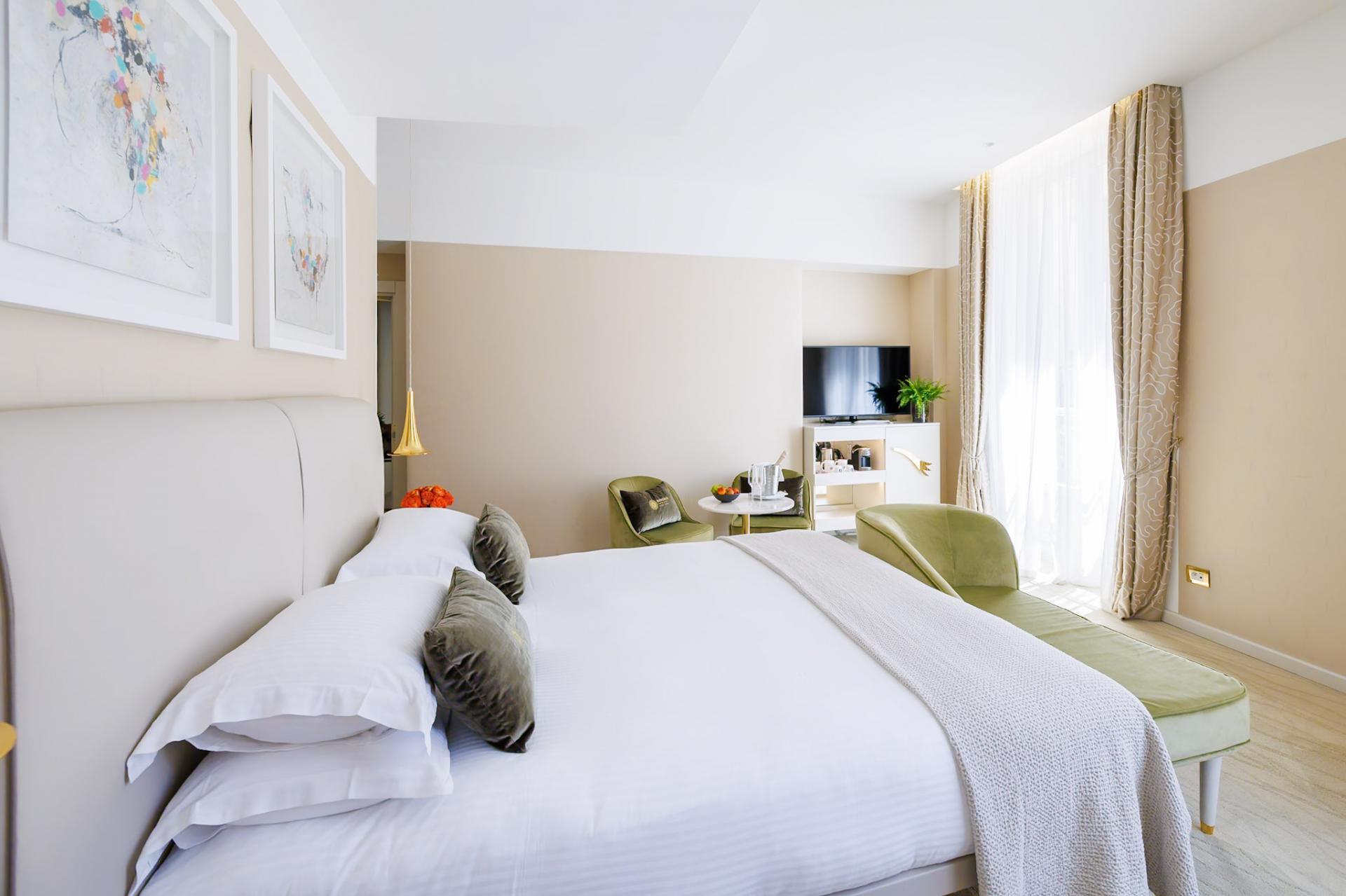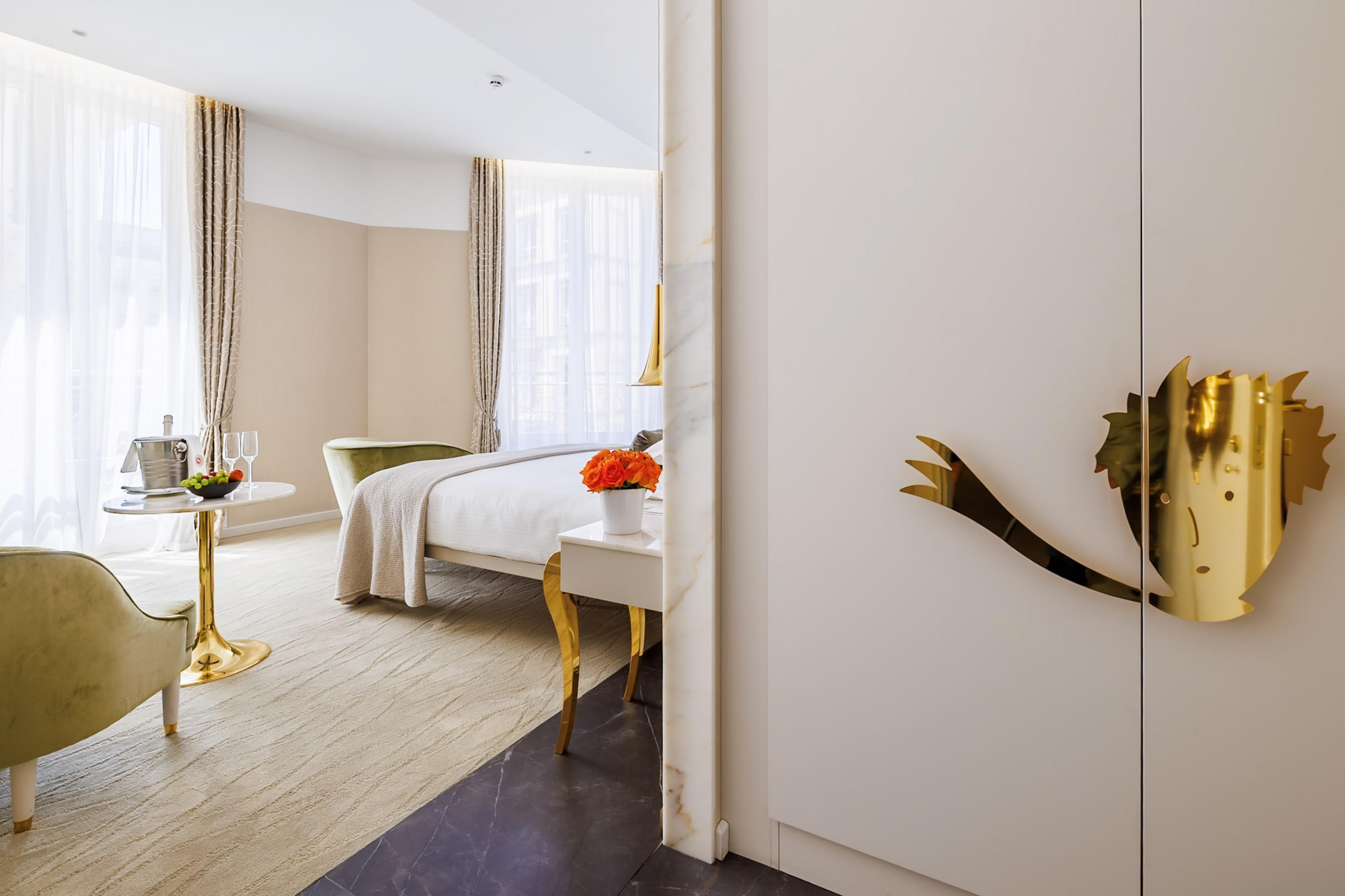 L’atmosphère de la chambre repose sur une élégance discrète : des lignes épurées, des couleurs douces et un mobilier soigneusement sélectionné qui créent un environnement agréable et reposant.