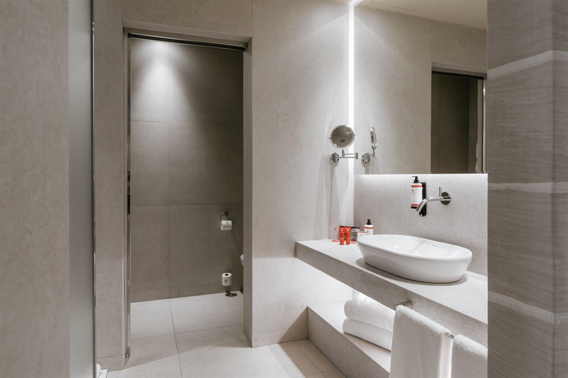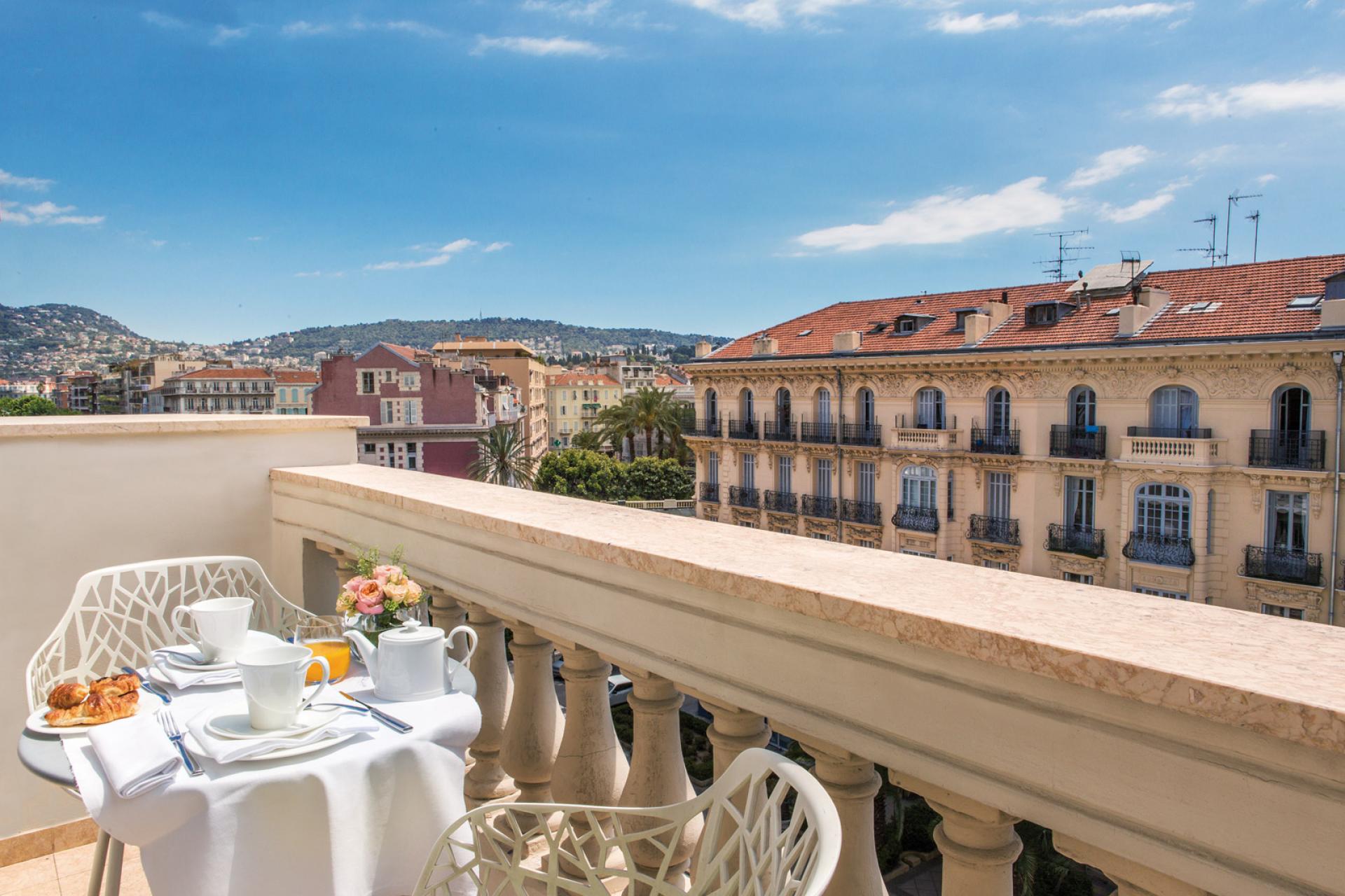 Dès l’entrée dans la Chambre Exclusive avec Terrasse, la lumière naturelle s’impose comme un élément central. Les grands espaces, les teintes claires et le parquet en bois clair créent une atmosphère douce et élégante, typique de l’art de vivre de la Côte d’Azur. Le mobilier aux lignes raffinées et les détails décoratifs délicats composent un cadre apaisant, pensé pour offrir un véritable moment de sérénité.